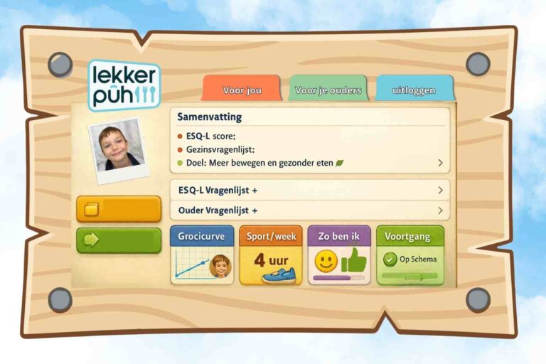 Een digitaal dossier voor kind, ouder en professional met intakevragenlijsten, verslag, groeicurve, sport bijhouden, welbevinden volgen en een overzichtelijk doelenpad.